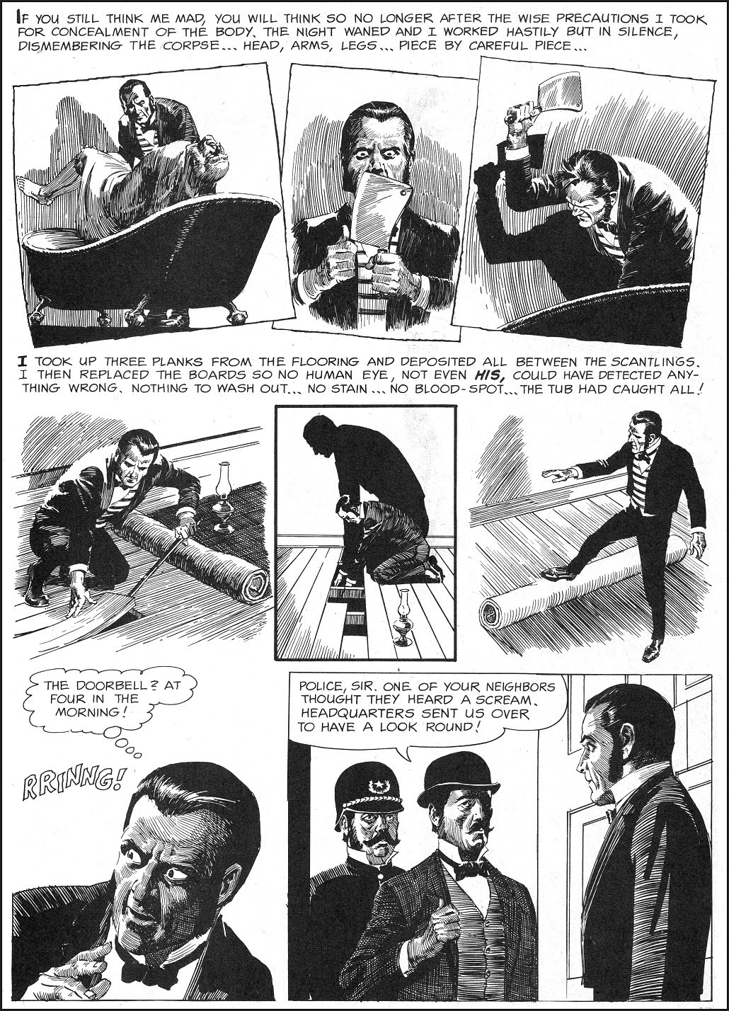 As histórias de Edgar Poe já circularam por várias mídias, e nos quadrinhos suas melhores adaptações foram feitas na década de 1960, pela editora Warren, em revistas como Creepy e Eerie. Abaixo você pode ler alguns de seus contos mais famosos, como Berenice, O Barril de Amontillado, O Gato Preto e A Máscara da Morte Vermelha no traço de artistas como Reed Crandall e Berni Wrightson. As ilustrações reproduzem com severidade o clima mórbido e desesperançado presente nas narrativas deste ilustre escritor, o texto é fiel ao original e mantém o suspense e o horror de suas trágicas histórias.